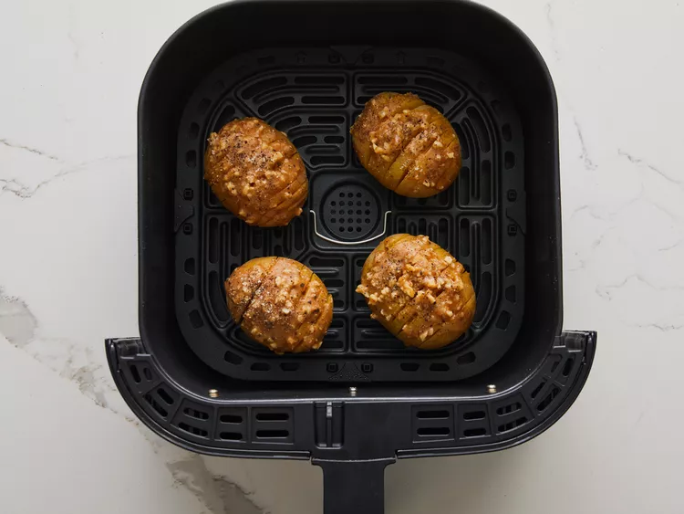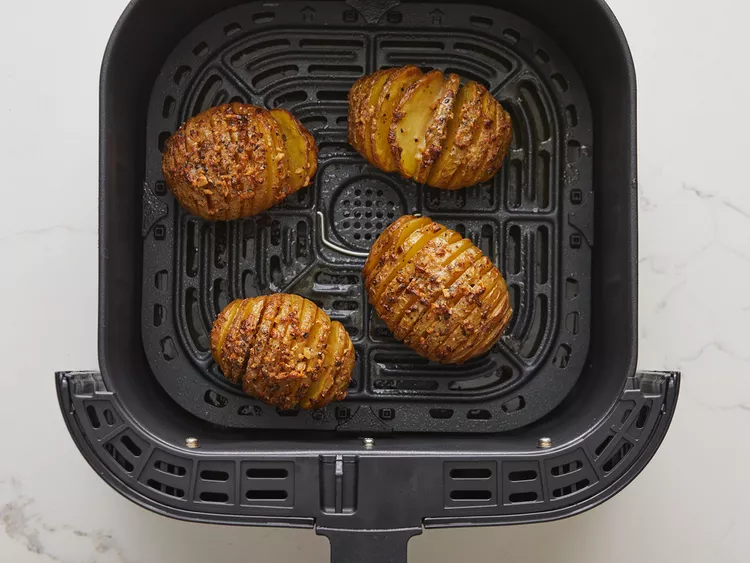 Cook sliced potatoes in an air fryer for a quick, delicious side dish. Hasselback potatoes were created at the Hotel Hasselbacken in Stockholm, Sweden, in the 1940s, and they’re still a popular dish today. Not only are they delicious and easy to make with a lovely presentation, but they also take half the time to cook in an air fryer.